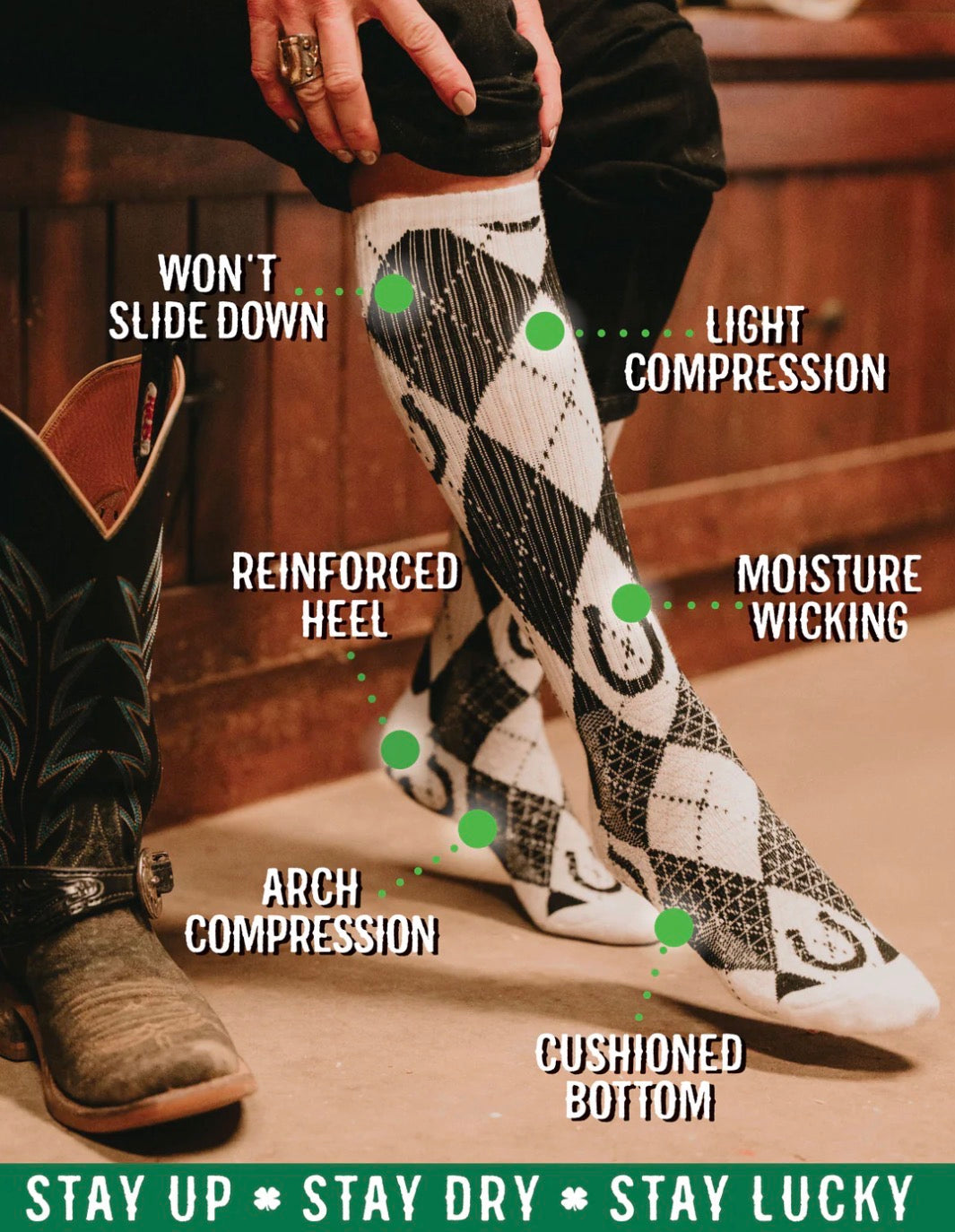 SHOP THE COLLECTIONLucky Chuck® socks are not your grandpa’s boot socks — they’re engineered for grit, sweat, and style, with performance technology you can actually feel. Built with hemp biofiber, they’re tougher than wool, cooler in heat, and softer with every wash. And they’re designed specifically for cowboy boots — no bunching, no sliding, no sagging.